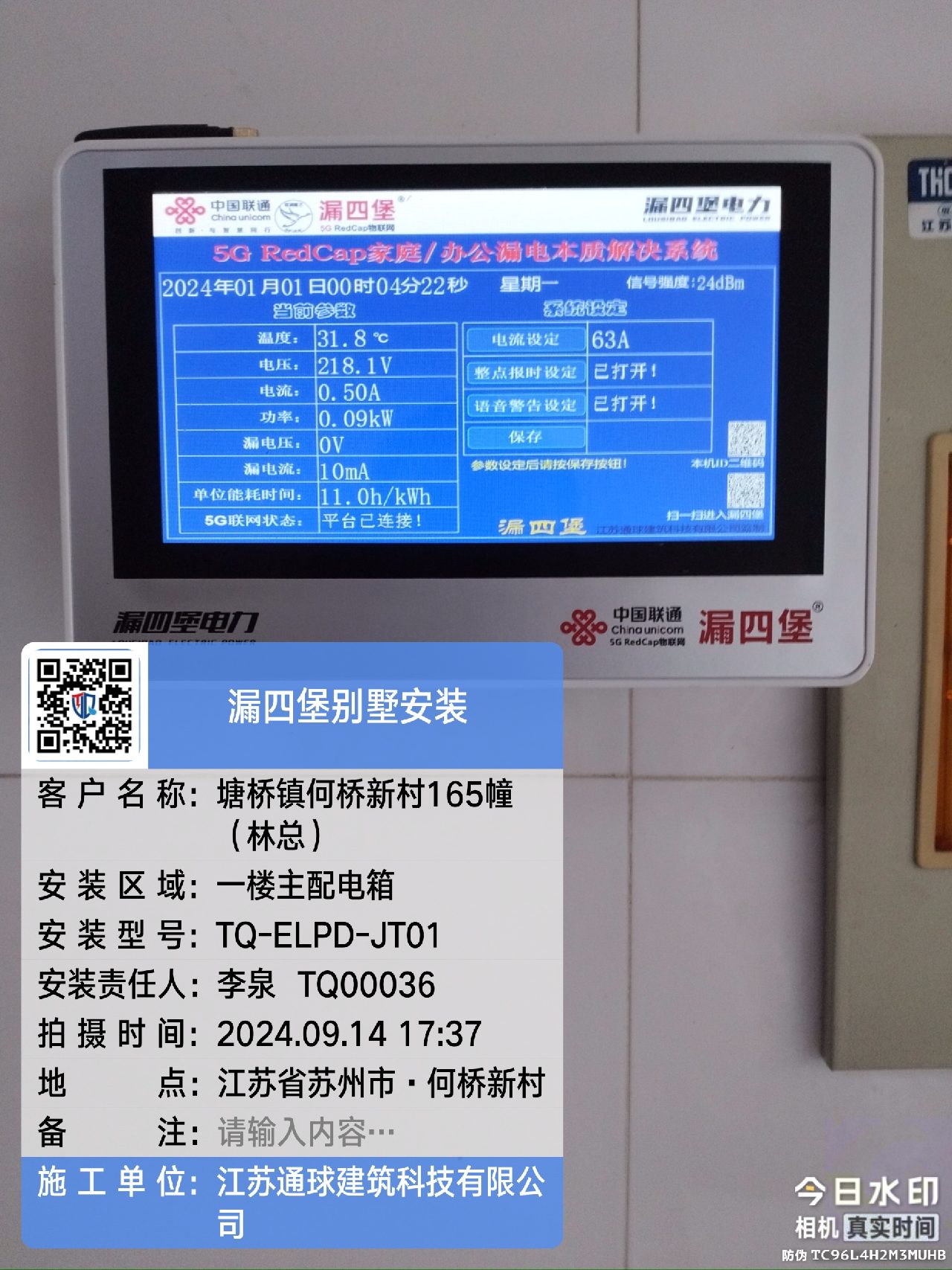 苏州市塘桥镇何桥新村5G RedCap家庭/办公漏电本质解决系统安装实例